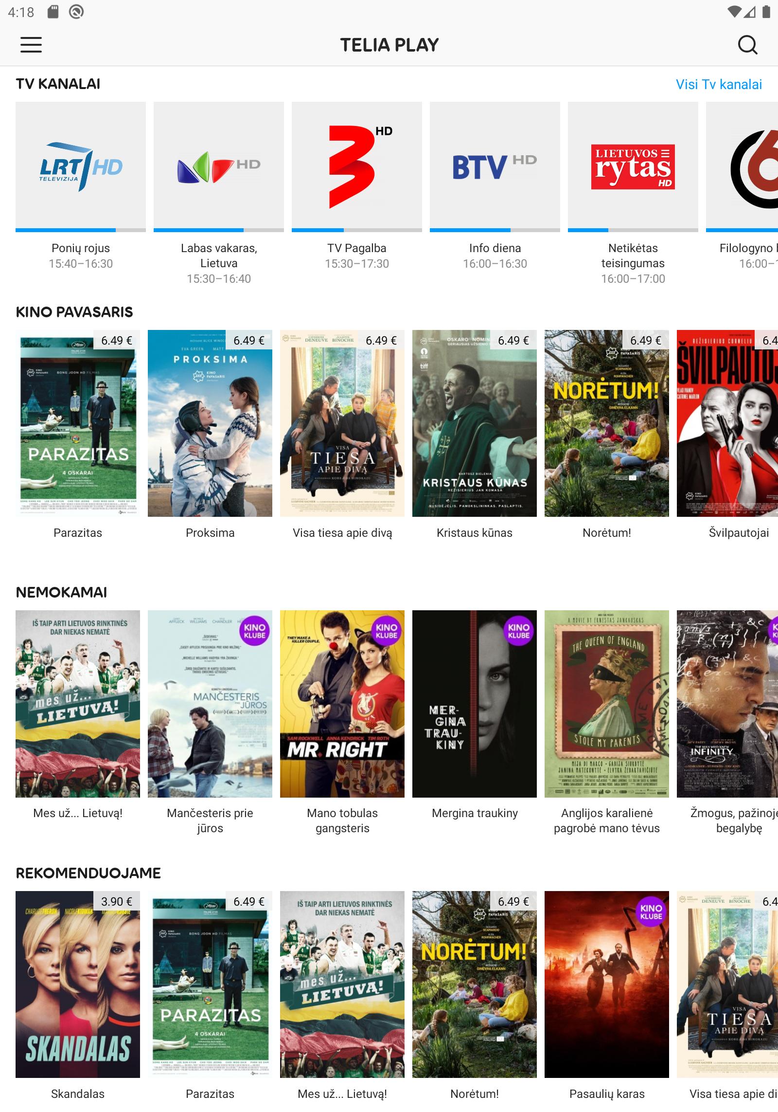 Net 60 TV kanalų su iki 14-os dienų įrašais kurių didžioji dalis HD raiška HBO Kino klubas Filmų nuoma Žiūrėkite kur norite telefone kompiuteryje planšetėje Veikia visoje ES. Njut av den populäraste mixen av tv film och serier för hela familjen vare sig du är hemma på bussen i sommarstugan eller utomlands. För att kunna använda Telia Play För att se på Telia Play i mobilen eller surfplattan behöver du installera vår app som finns för Apple eller Android.